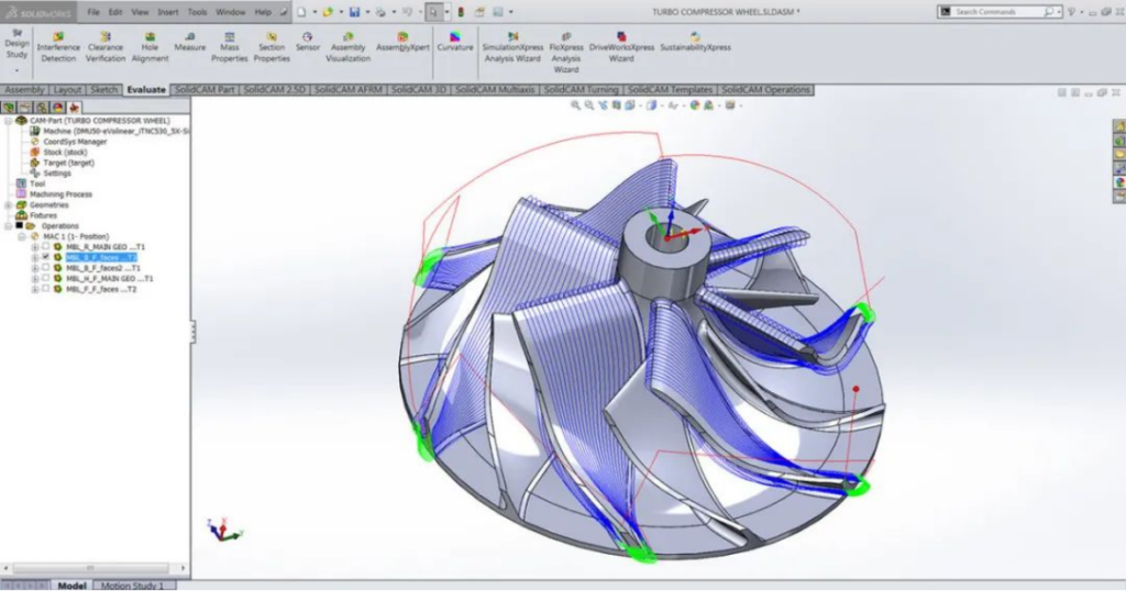 - UG NX (Siemens NX): Excels in intricate part modeling and machining, such as aviation impellers, with advanced CAM modules and simulation capabilities, often used for five-axis path optimization.